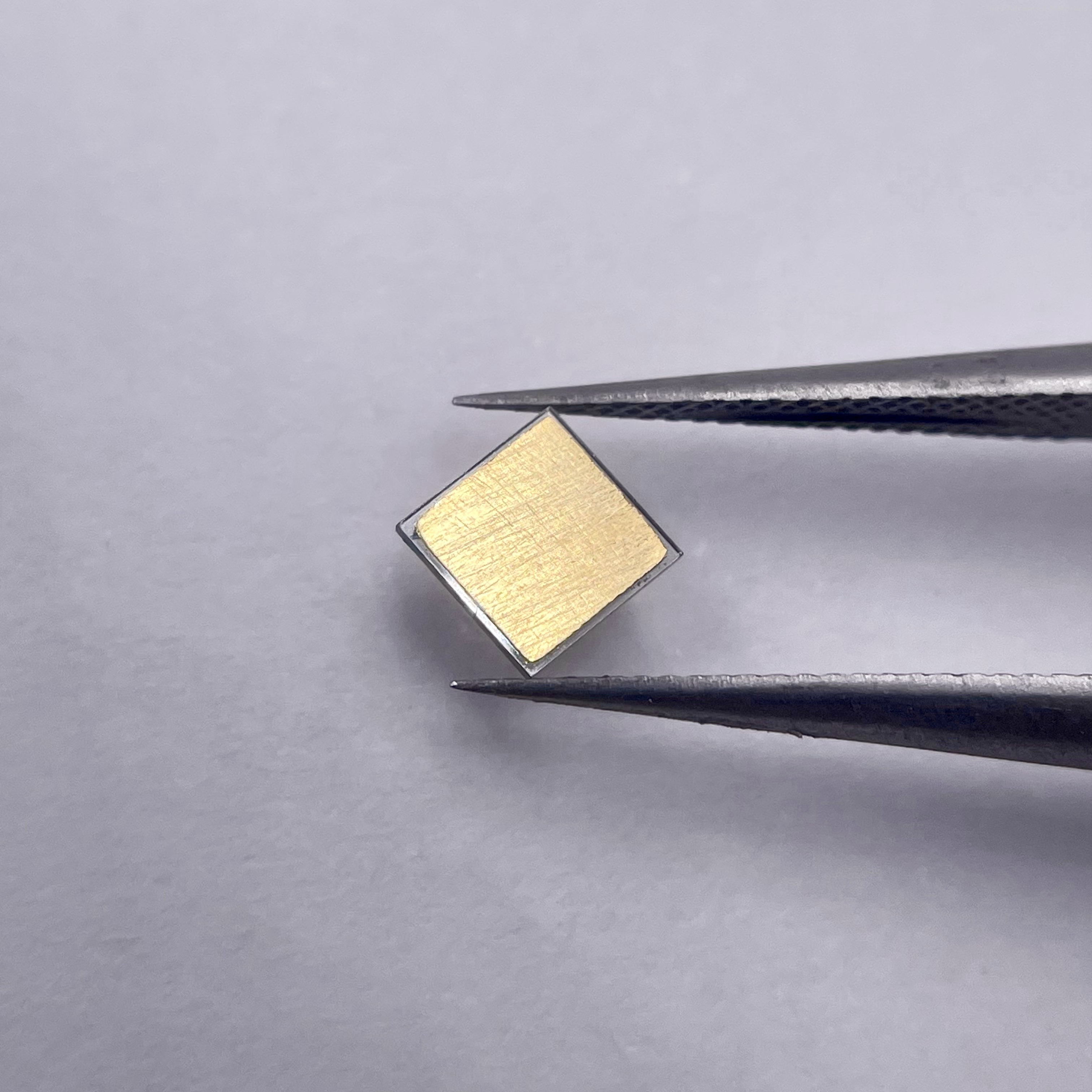 Our Diamond Substrates are high-purity CVD single crystal diamonds with a durable gold plating layer on the working surface. CVD diamond possesses the highest thermal conductivity of any bulk material [0†L18-L22], making it exceptionally effective at pulling heat away from high-power devices. The gold coating enables direct soldering, eutectic bonding, or wire bonding with standard assembly processes, so you can attach components immediately without extra surface preparation [0†L20-L22].