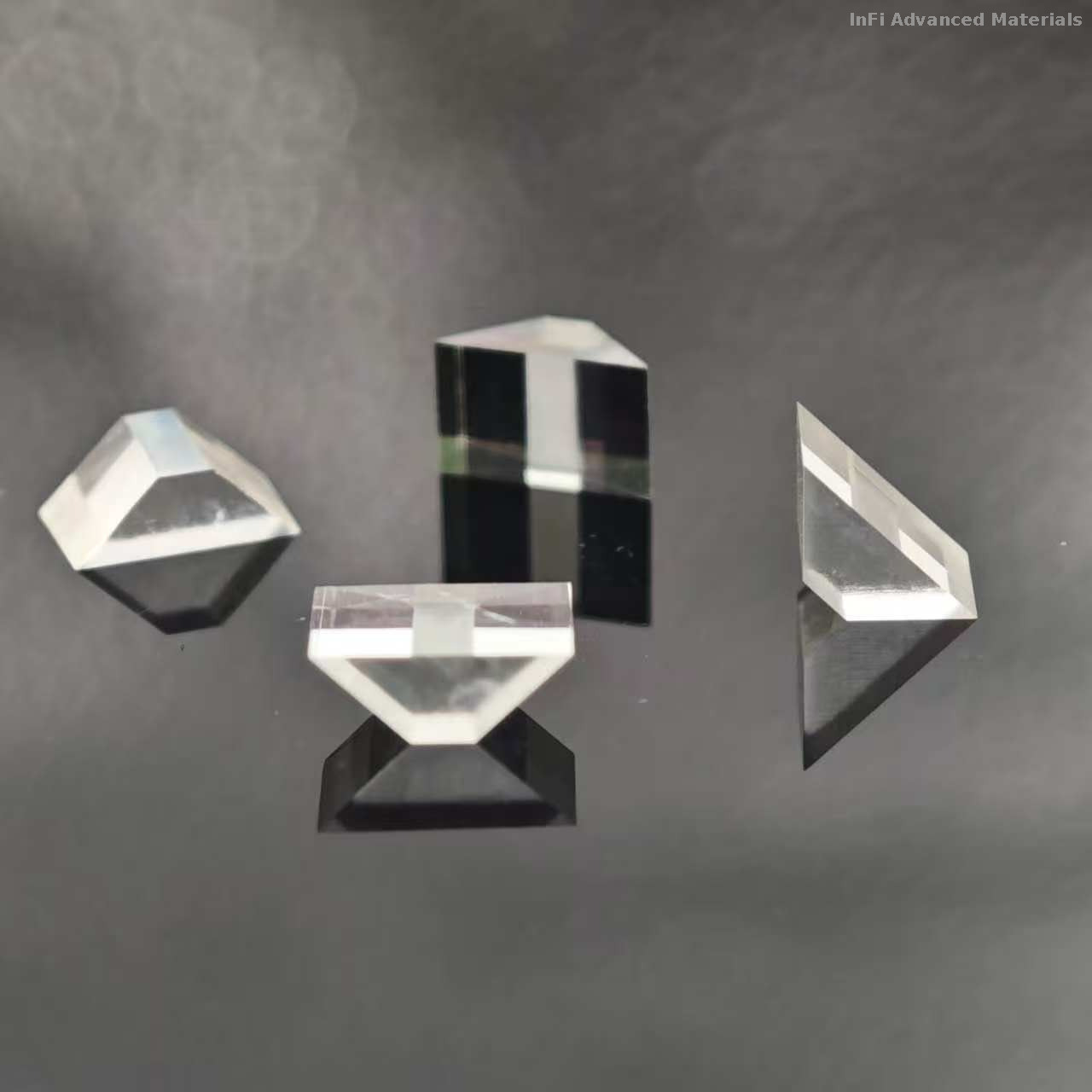 | • Extremely broad transmission spectrum 1. The refractive index of diamond should be ~2.4. We need to achieve broad and high transmission in the mid-infrared at wavelengths from 1 micron to 30 microns. 2. The surface roughness should be well below 50nm for good transmission from 1μm wavelength, 3. The error should not exceed 0.2mm, 4. Applied to infrared radiation measuring device, the triangular diamond prism is good for mid-infrared transmission. |